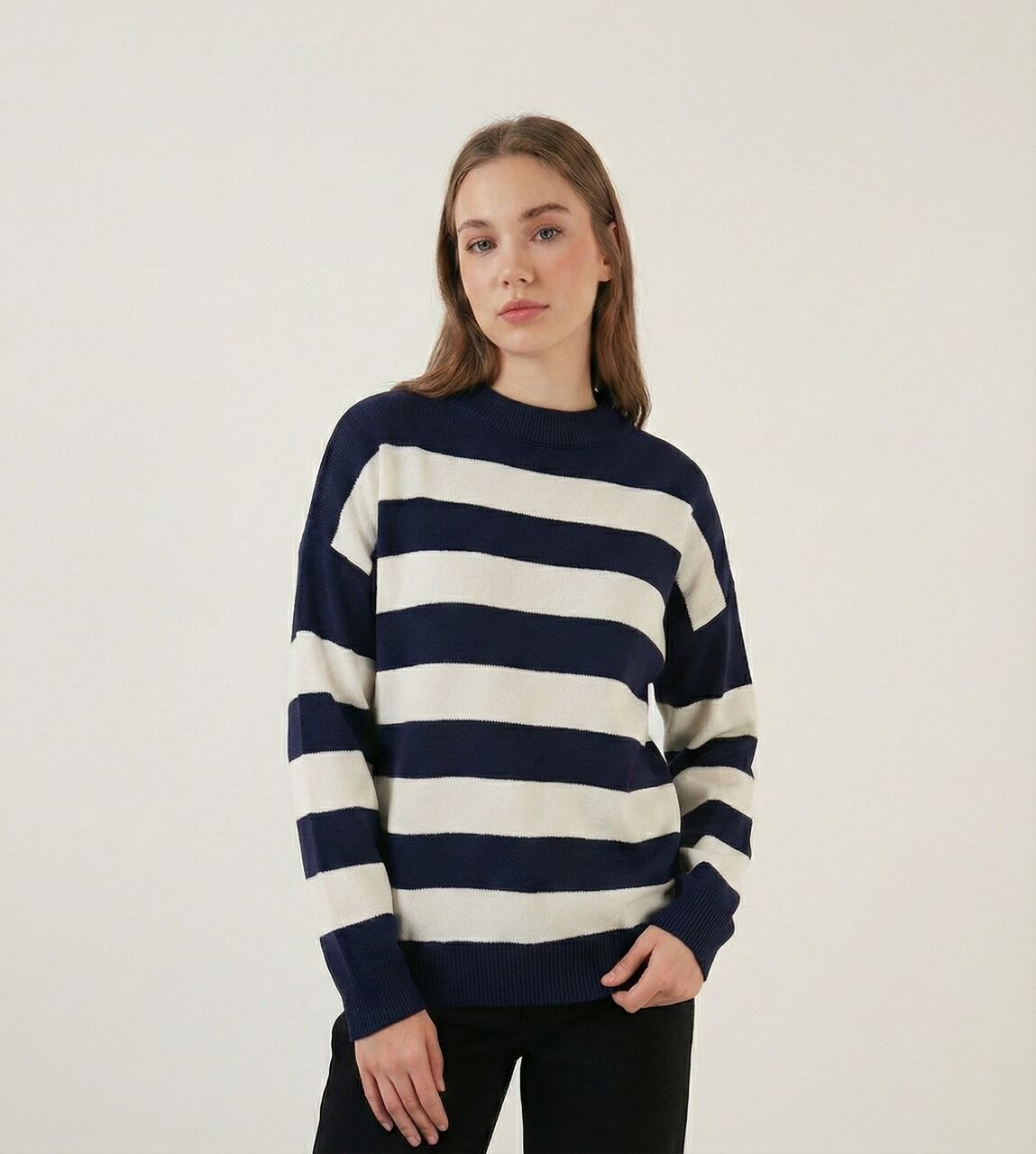 Kadın Çizgili Triko Kazak